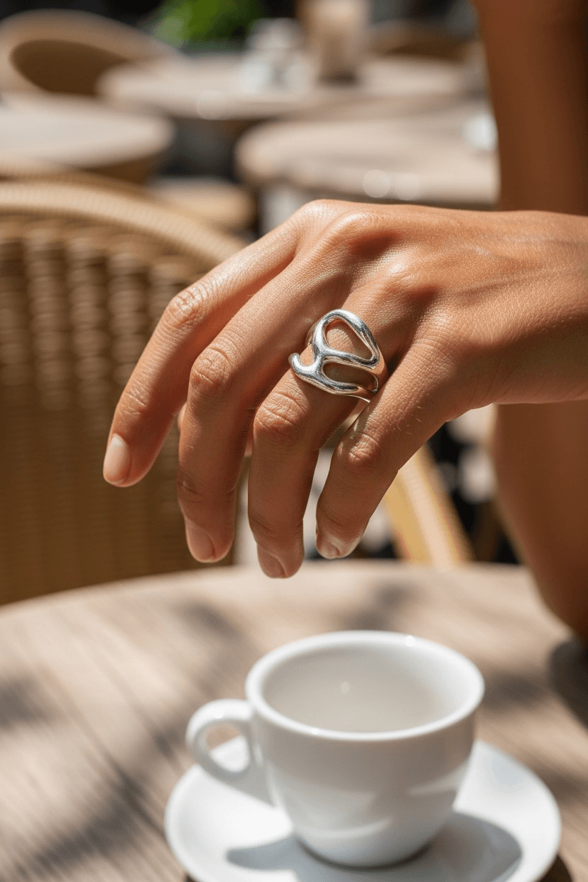 Δαχτυλίδι οργανικό με τρύπες επάργυρο γυαλιστερό